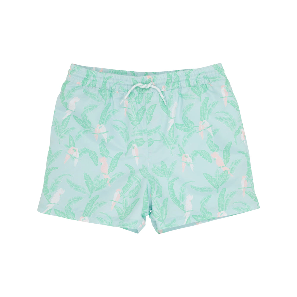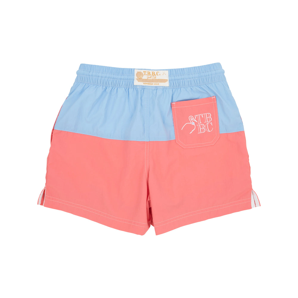 Pink Chicken Swim Trunks in Blue Shells