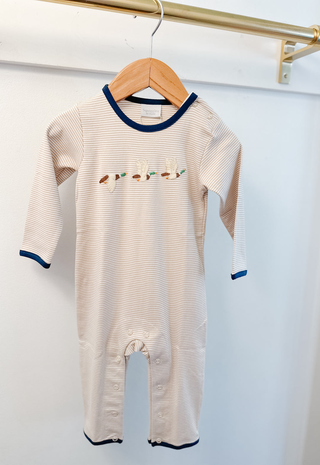 Angel Dear Stripe Romper with Dog Embroidery