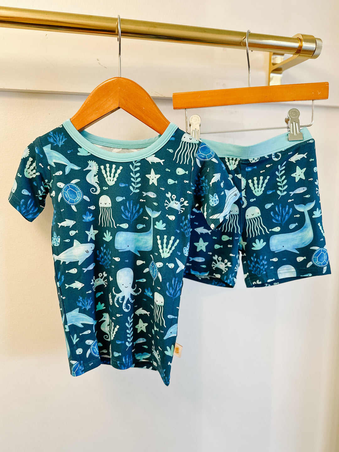 Kickee Pants Short Sleeve Henley Pajama Set in Jade Tennis