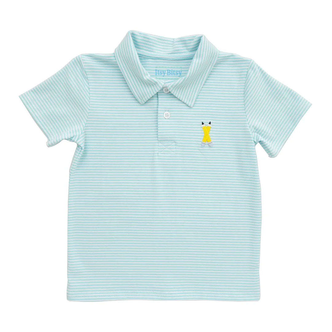 Tea Collection Long Sleeve Striped Polo in Heather Grey