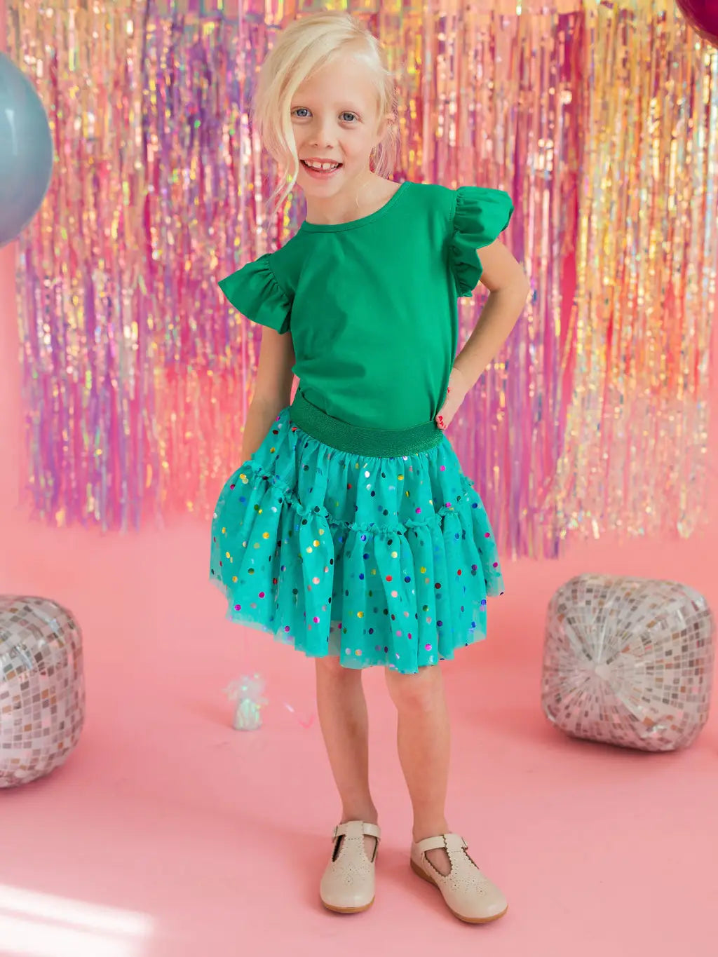 Add a pop of playful color with our Confetti Skirt, featuring a soft polyester lining and a ruffled tulle overlay sprinkled with festive confetti dots. The comfortable elastic waistband makes it easy to wear and perfect for twirling, dancing, or simply celebrating every day.