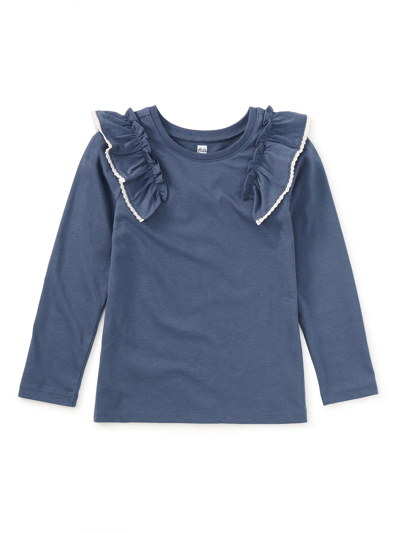 Designed for busy mornings and special moments alike, this long sleeve top helps parents get their child out the door feeling comfortable, confident, and cute--without a fuss. Crafted from 100% cotton jersey that's soft on skin and made to last, it features delicate lace-trimmed ruffle details that dress up the everyday.