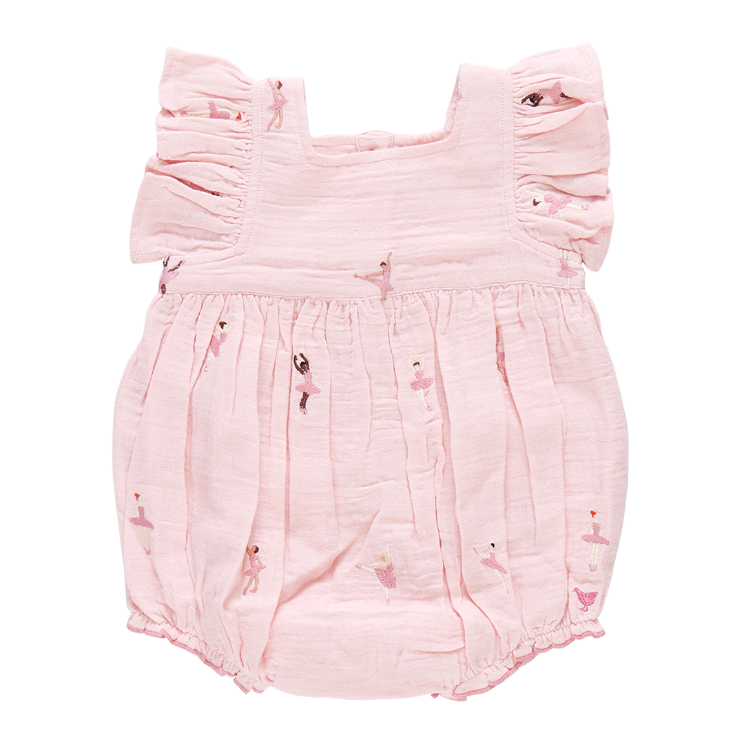 Pink Chicken Bamboo Romper in Light Blue Gingerbread